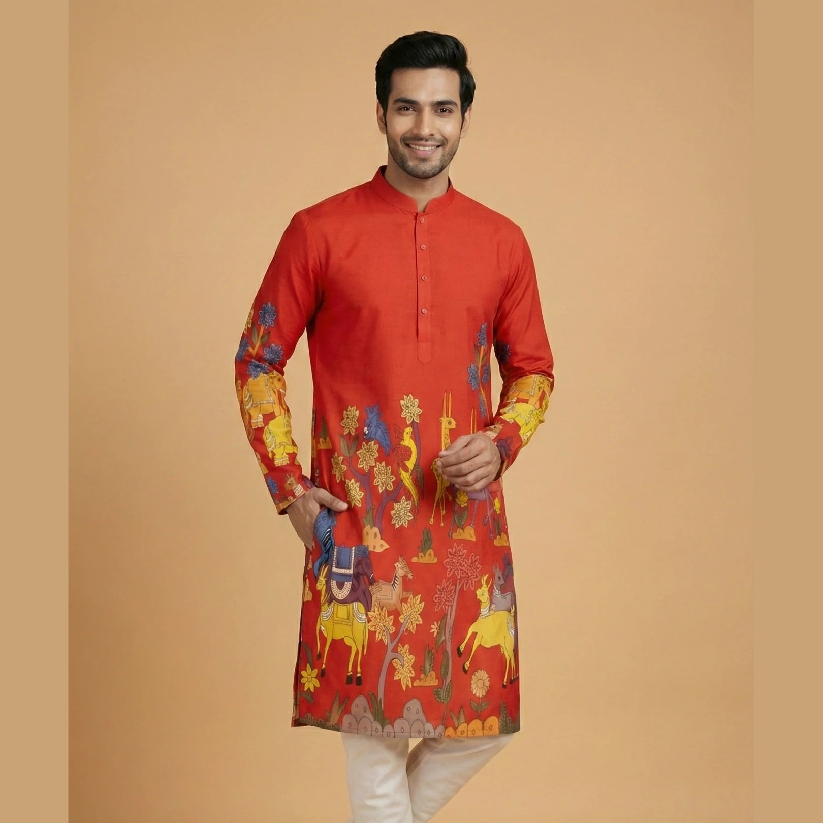 Men’s Kalamkari print cotton kurta